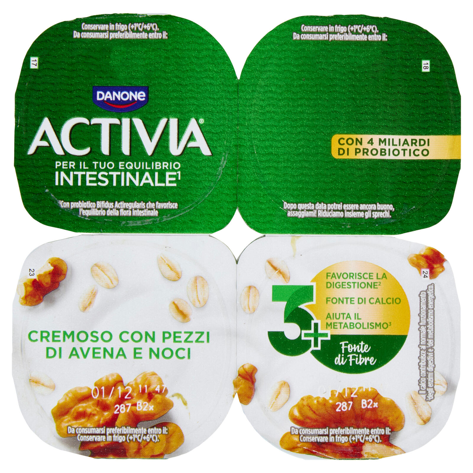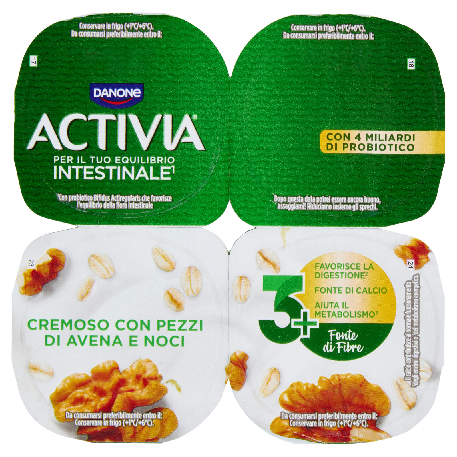ACTIVIA Fibre Yogurt con Probiotico Bifidus, gusto Avena e Noci, 4x125g