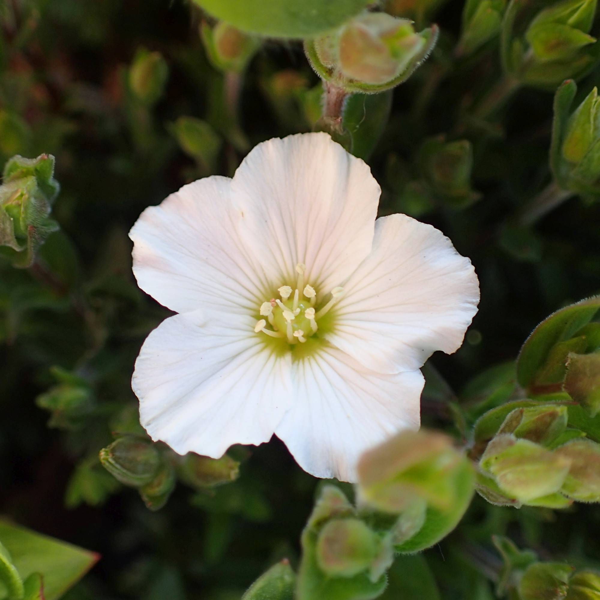 La pianta di Arenaria montana è una erbacea perenne rustica a bassa crescita, che sviluppa steli sottili ma resistenti, prostrati, con foglie grigio-verdi, da lineari a lanceolate, lunghe 1-2 cm. Genera fiori singoli o in cime rade, leggermente a coppa, larghi 1,5-2 cm, di colore bianco, che sbocciano all’inizio dell’estate. Pianta dal portamento strisciante, adatta per roccaglie e muretti a secco.