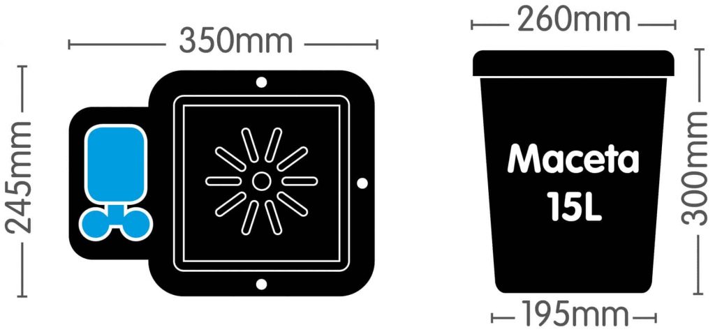 I vasi da 15 litri del modulo 1Pot e quelli da 8,5 litri del sistema easy2grow sono intercambiabili e si adattano ai vassoi di entrambi i sistemi.