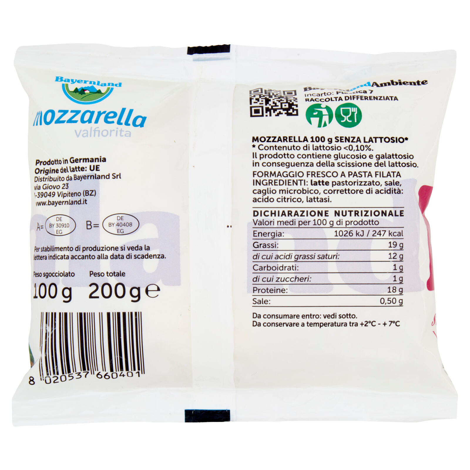Bayernland mozzarella valfiorita 100 g