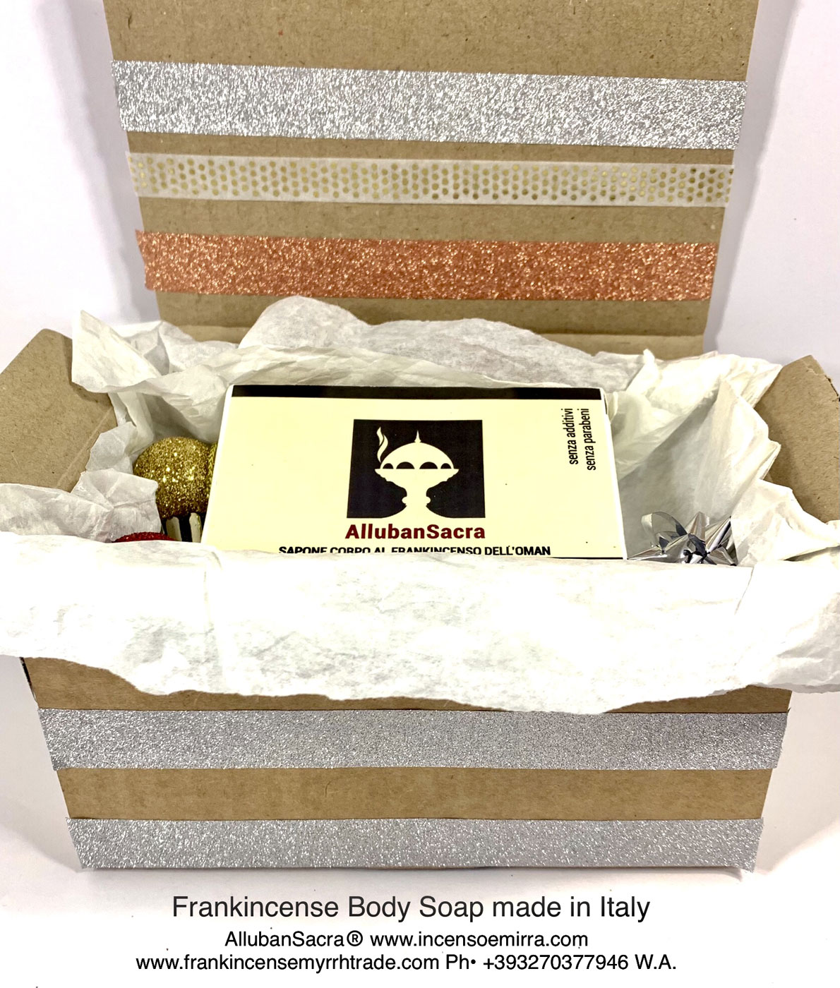 Box Natale con Sapone Vegetale al Frankincenso dell’Oman (incenso). AllubanSacra