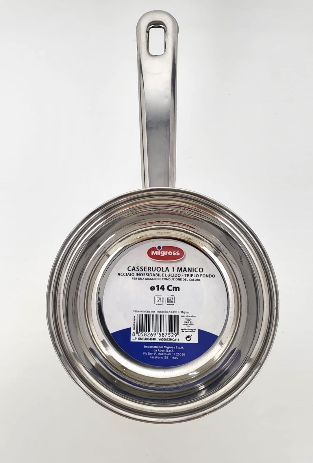 Casseruola Easy inox 1 manico ø cm.14 lt.0,7 ø14cm h.7 Migross