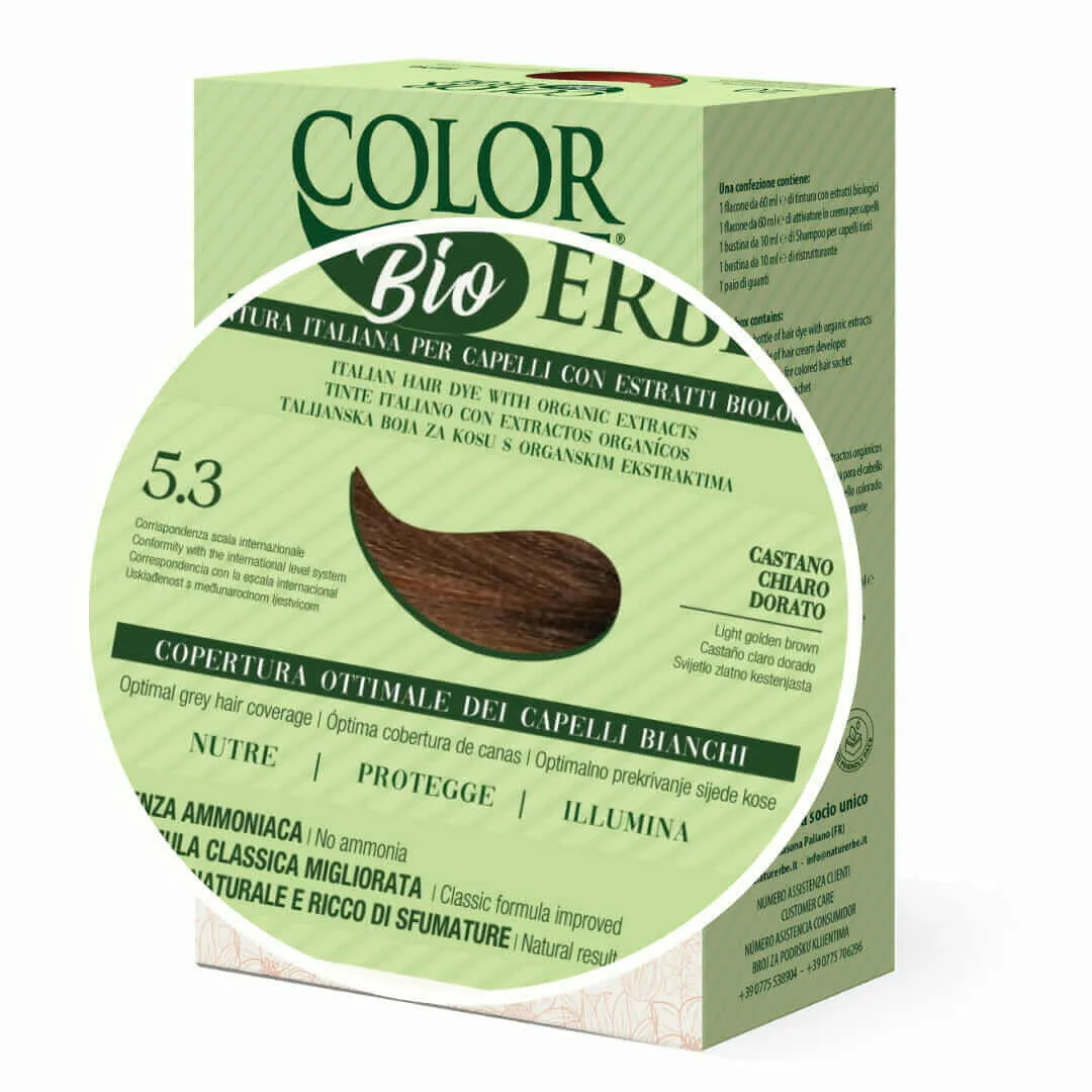 La tintura COLOR ERBE nutre, protegge e illumina, grazie agli estratti biologici: fiori di camomilla, foglie di noce, germe di grano, olio di argan e fiori di calendula ed è sempre più sicura per la tua salute: SENZA ammonica, resorcina, nonoxynol, parabeni e formaldeide.