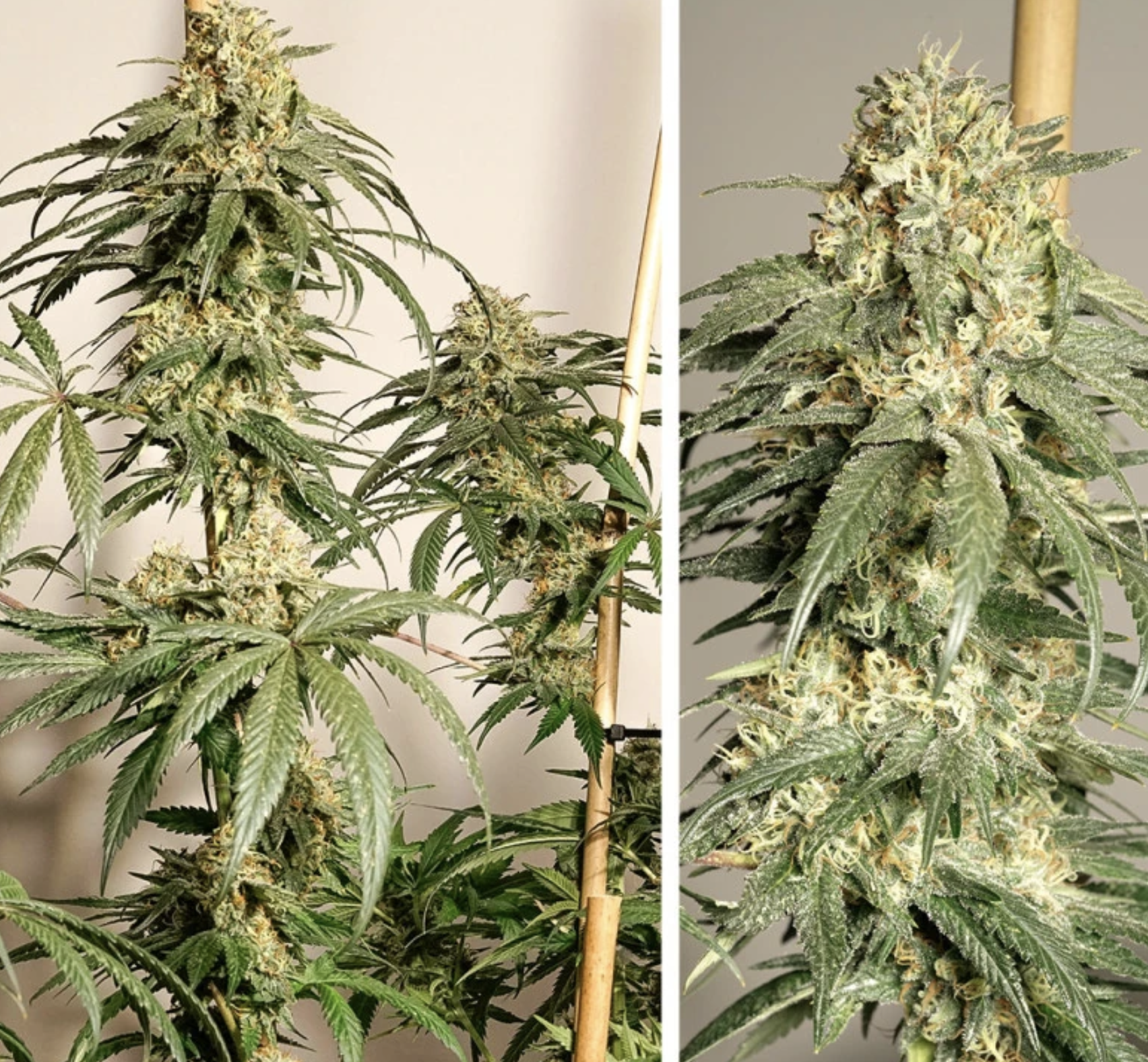 I fiori superiori (cima principale) crescono spesso intorno ai 25-50 cm e diventano abbastanza pesanti da richiedere un sostegno. Con topping e fimming (HST, cannabis High Stress Training) durante la fase vegetativa (possibilmente più volte) e con l’LST (Low Stress Training) o la tecnica SCROG, è possibile controllare in qualche modo la sua altezza.