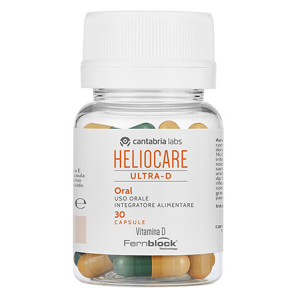 Integratore alimentare a base di Polypodium Leucotomos, Vitamina C e Vitamina E, sostanze antiossidanti che contribuiscono alla protezione delle cellule dallo stress ossidativo. L’utilizzo di Heliocare Ultraè utile per tutte le presone che svolgono attività lavorativa, sportiva, di hobby etc., all’aria aperta.È particolarmente indicato per soggetti a rischio quali Fototipo I e II, persone che sviluppano facilmente eritema, pazienti affetti da fotodermatosi, vitiligine e psoriasi.