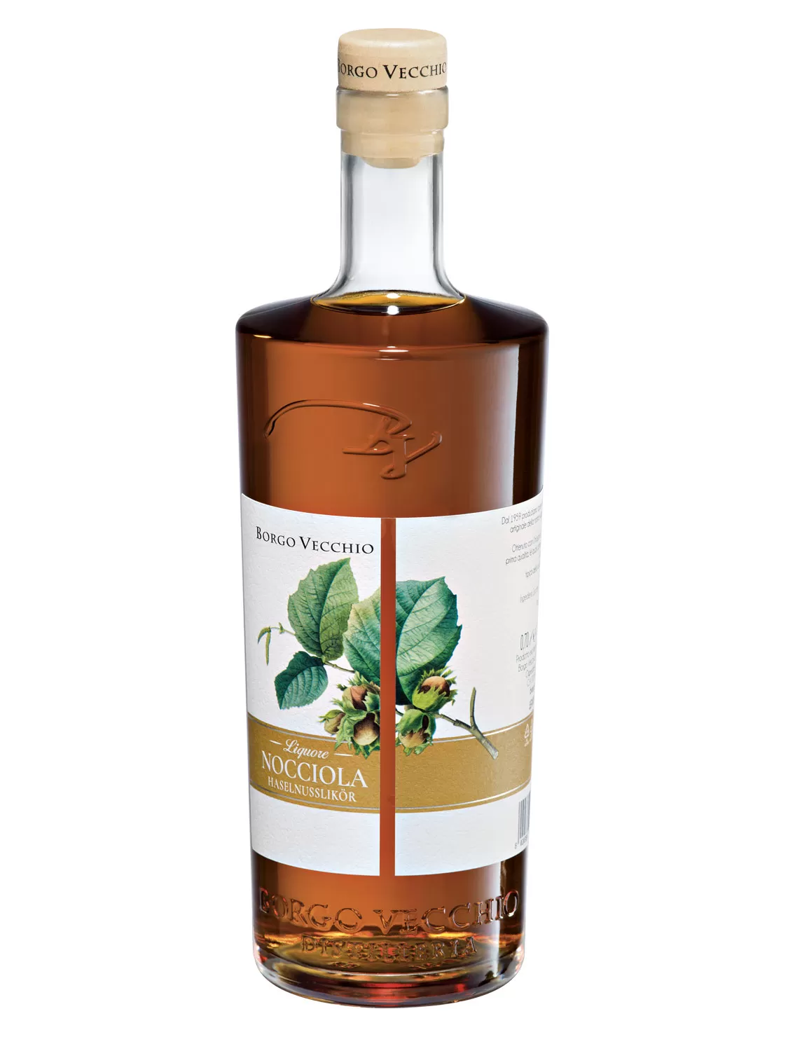 Artisanal liqueur based on Borgo Vecchio hazelnuts. Since 1959 we have been producing this typical artisanal liqueur, according to a jealously guarded recipe. Obtained both by infusion of top quality hazelnut paste and by extraction. Our widely appreciated liqueur stands out for its intense aroma, typical of toasted hazelnuts.