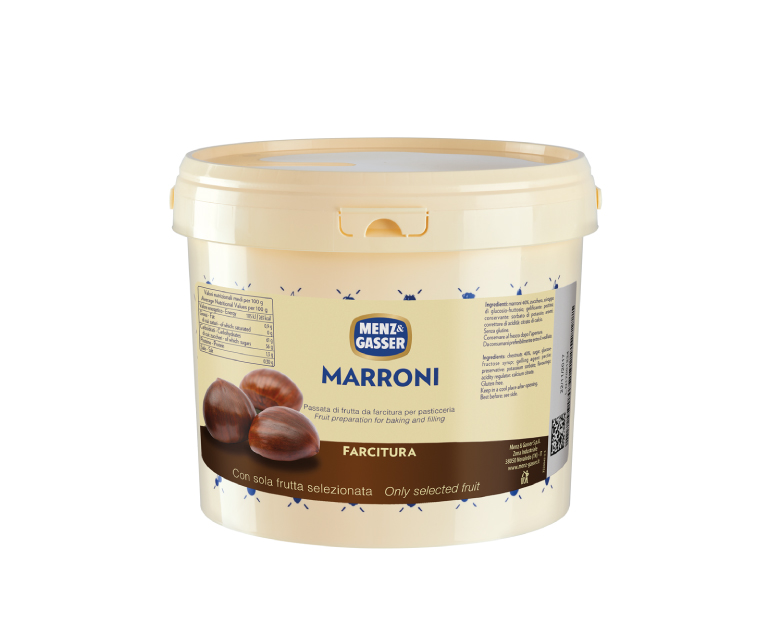 Marmellata Marroni Menz & Gasser. Passate multiuso da forno e post-forno dalla struttura semi-densa, sviluppate specificamente per industrie e grandi laboratori.