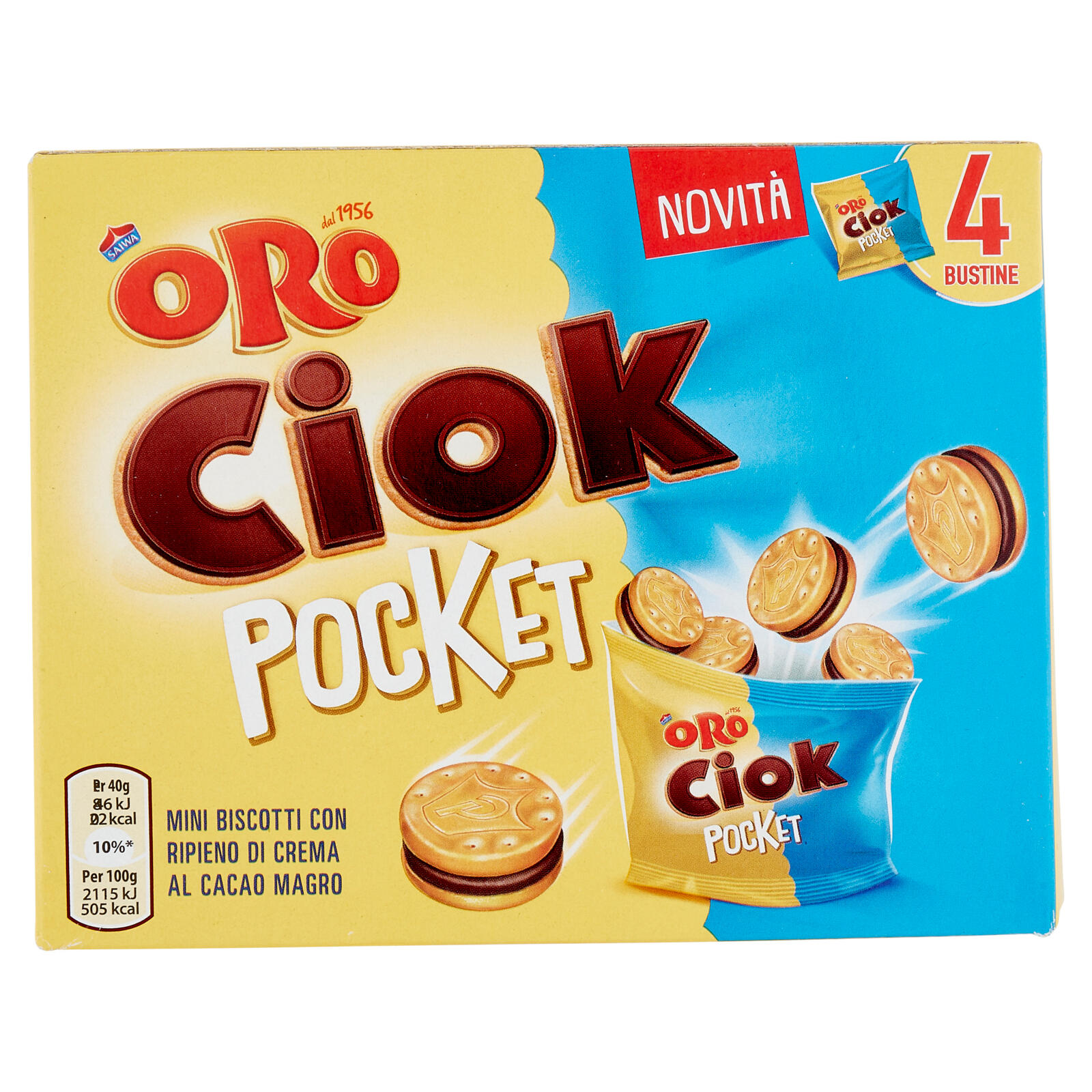 Oro Ciok Pocket Mini biscotti ripieni di crema al cacao magro – 4 x 40 g