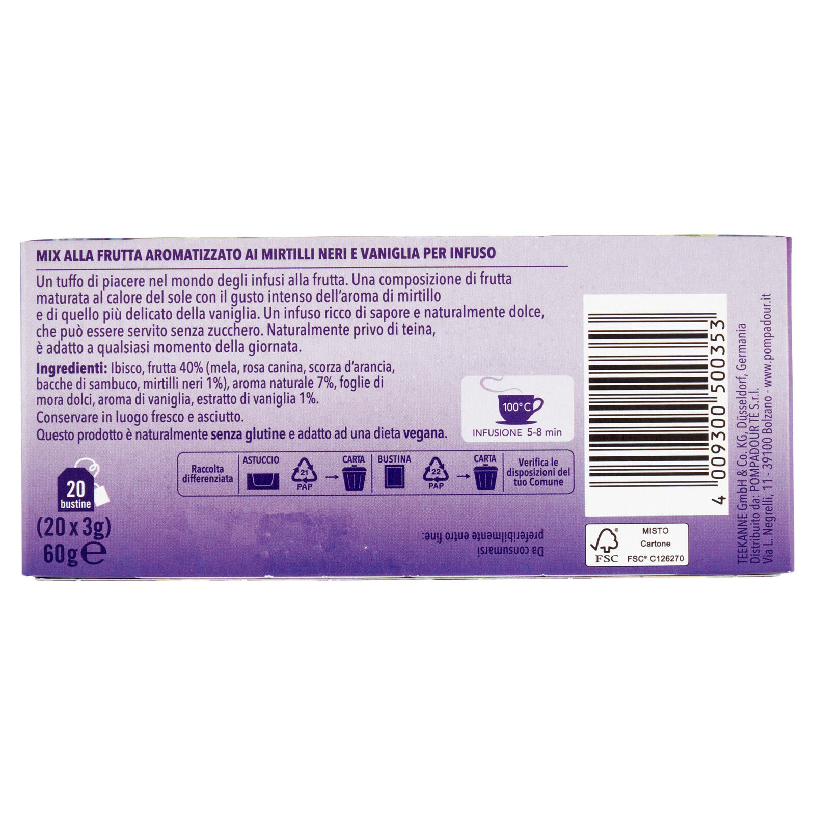 Mix alla frutta aromatizzato ai mirtilli neri e vaniglia per infuso