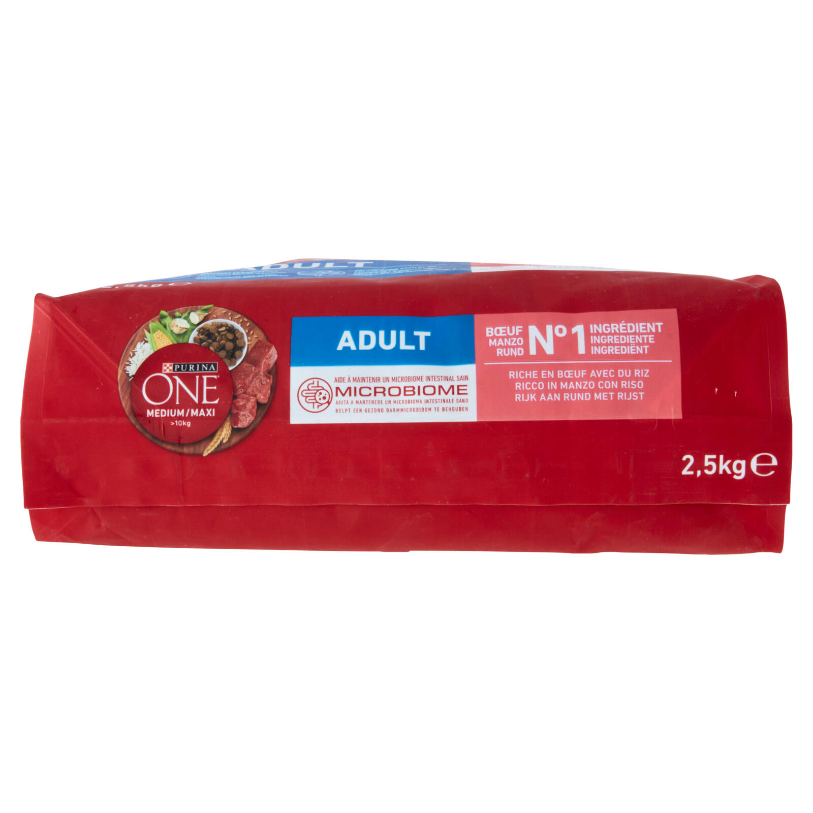 PURINA ONE Medium/Maxi Adult Ricco in Manzo con Riso 2,5 kg