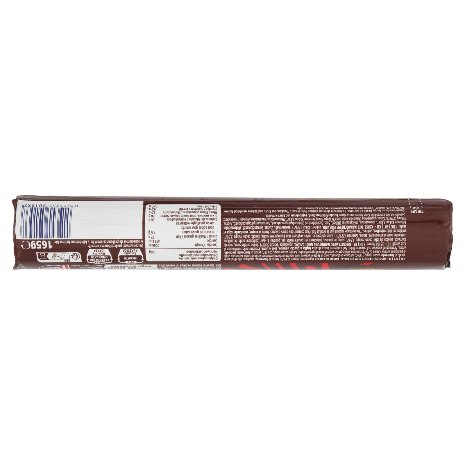 Ringo Cacao Biscotti Farciti con Crema Cacao Snack Merenda Tubo 165g