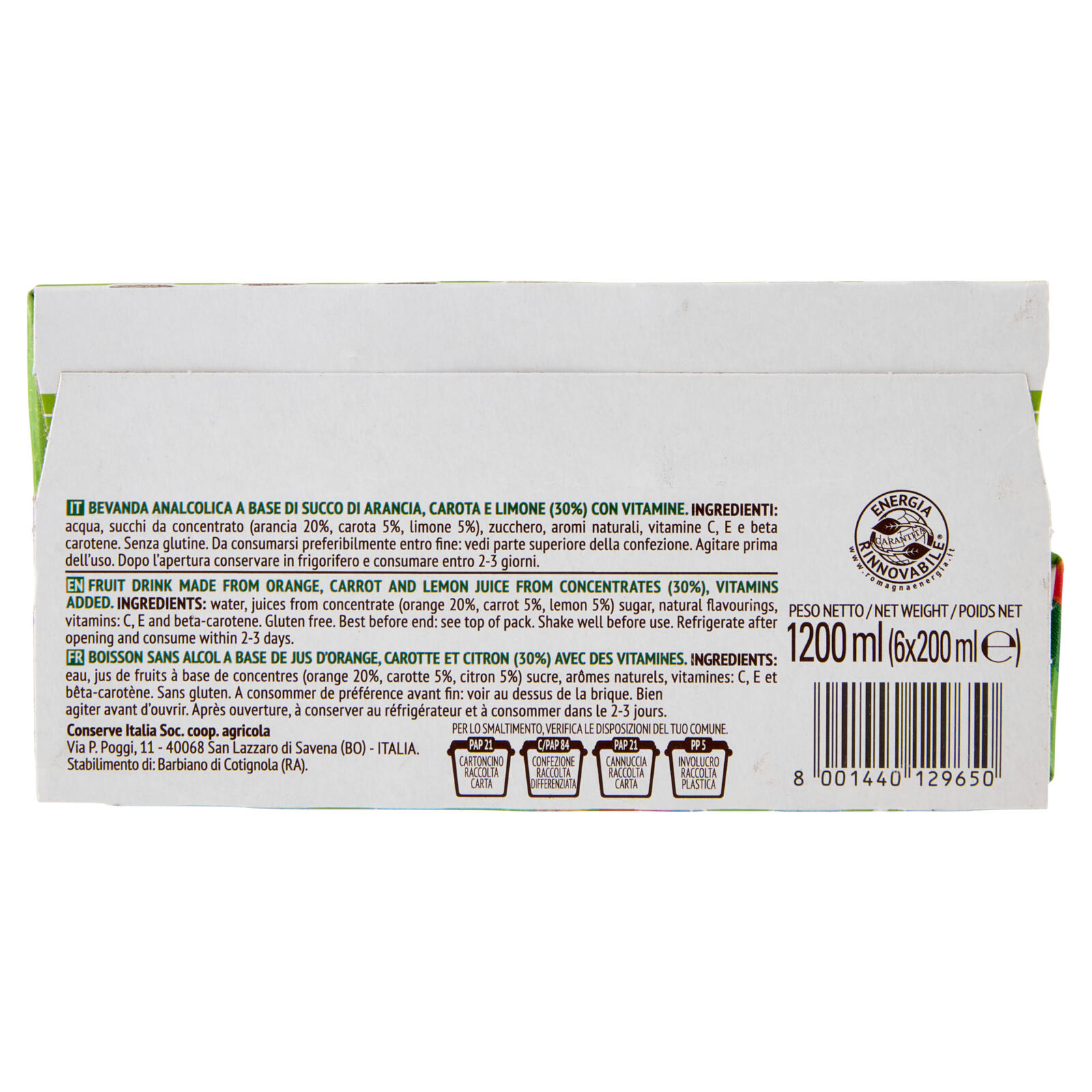 Bevanda analcolica a base di succo di arancia, carota e limone (30%) con vitamine