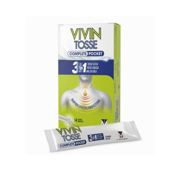 Vivin Tosse Pocket Adulti arancia e vaniglia 14 bustine monodose 10ml è uno sciroppo in bustine che forma un film mucoadesivo che lenisce la gola irritata, calma la tosse e favorisce l’idratazione e l’espulsione del muco.